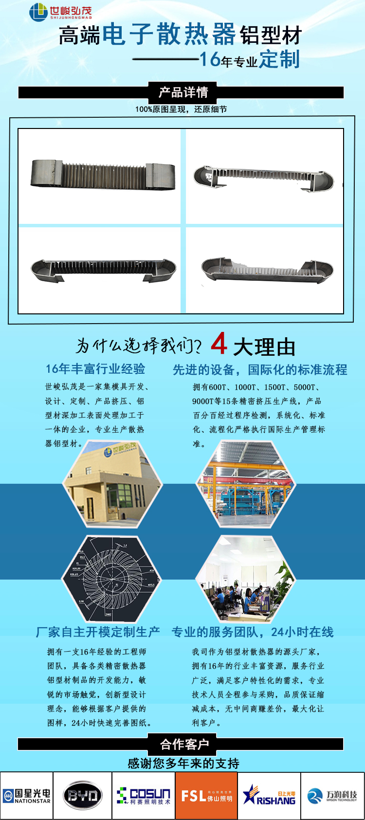產品材質:選用國標AA6063-T5高純度鋁合金,密度高、可塑性強。