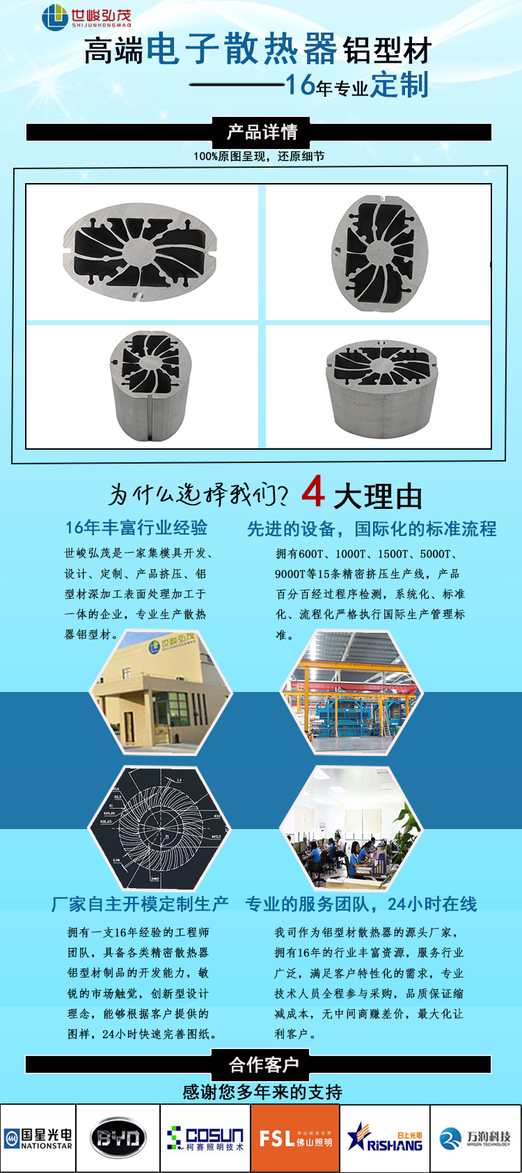 產品材質:選用國標AA6063-T5高純度鋁合金,密度高、可塑性強。