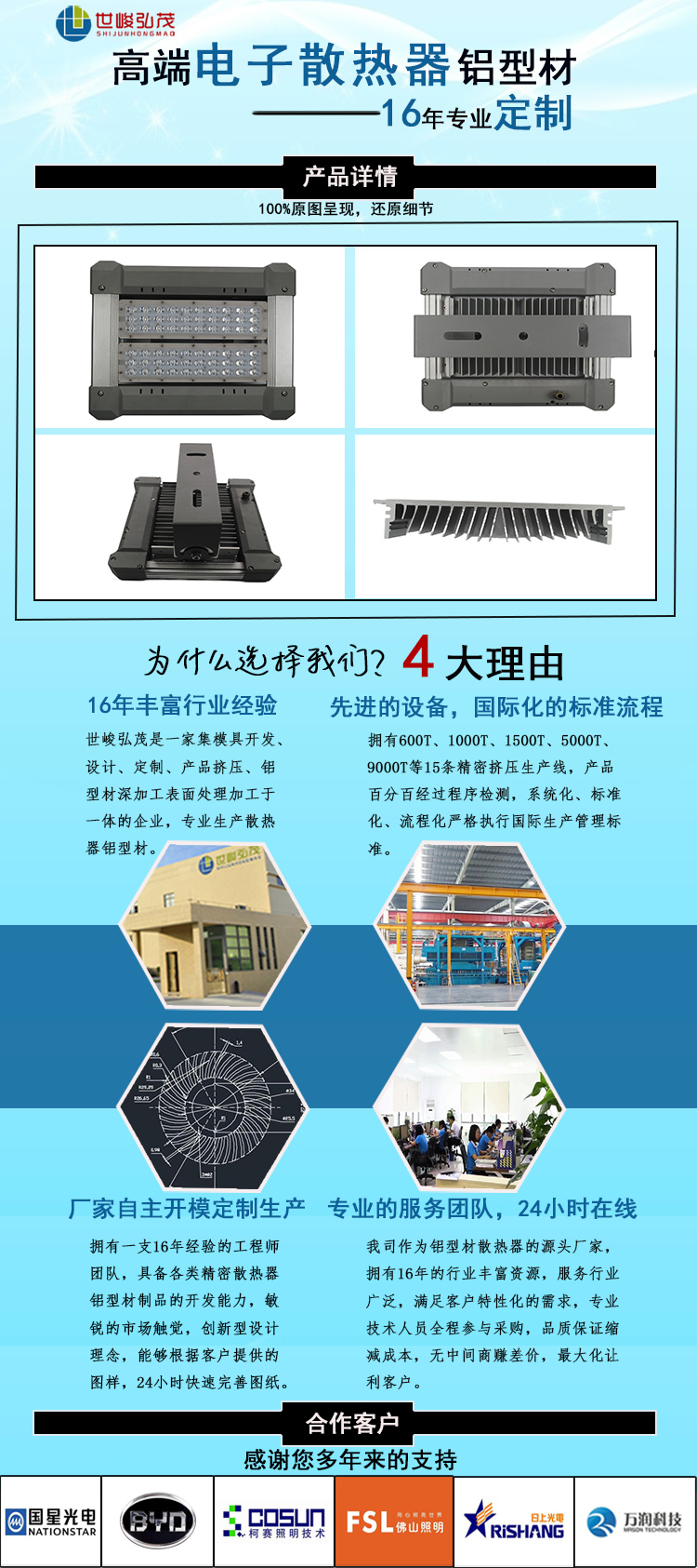 產品特性化定制開發:16年異形工業鋁型材定制設計生產經驗豐富,能特性化開發產品。