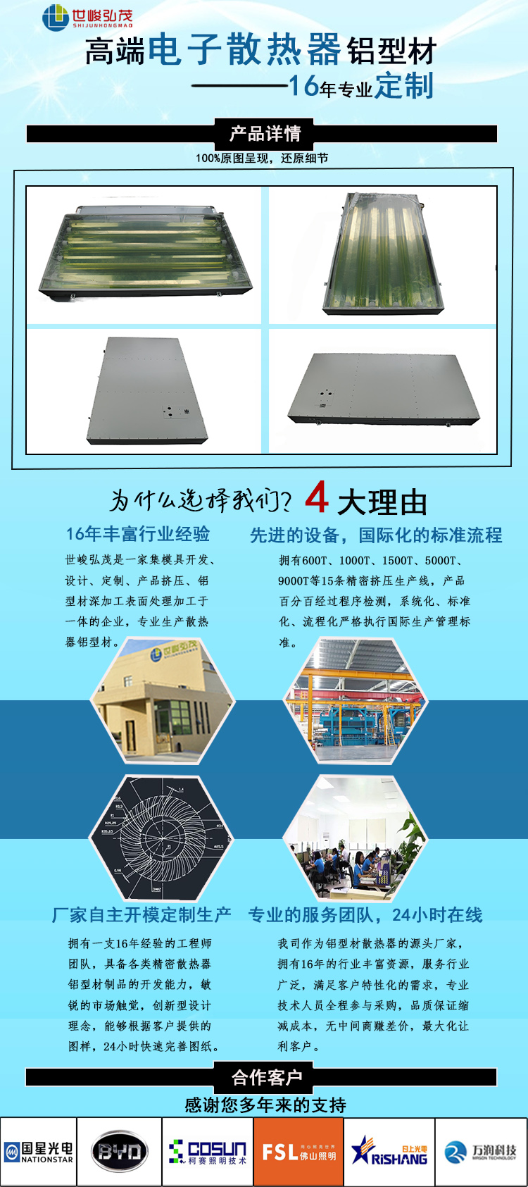 產品材質:選用國標AA6063-T5高純度鋁合金,密度高、可塑性強。
